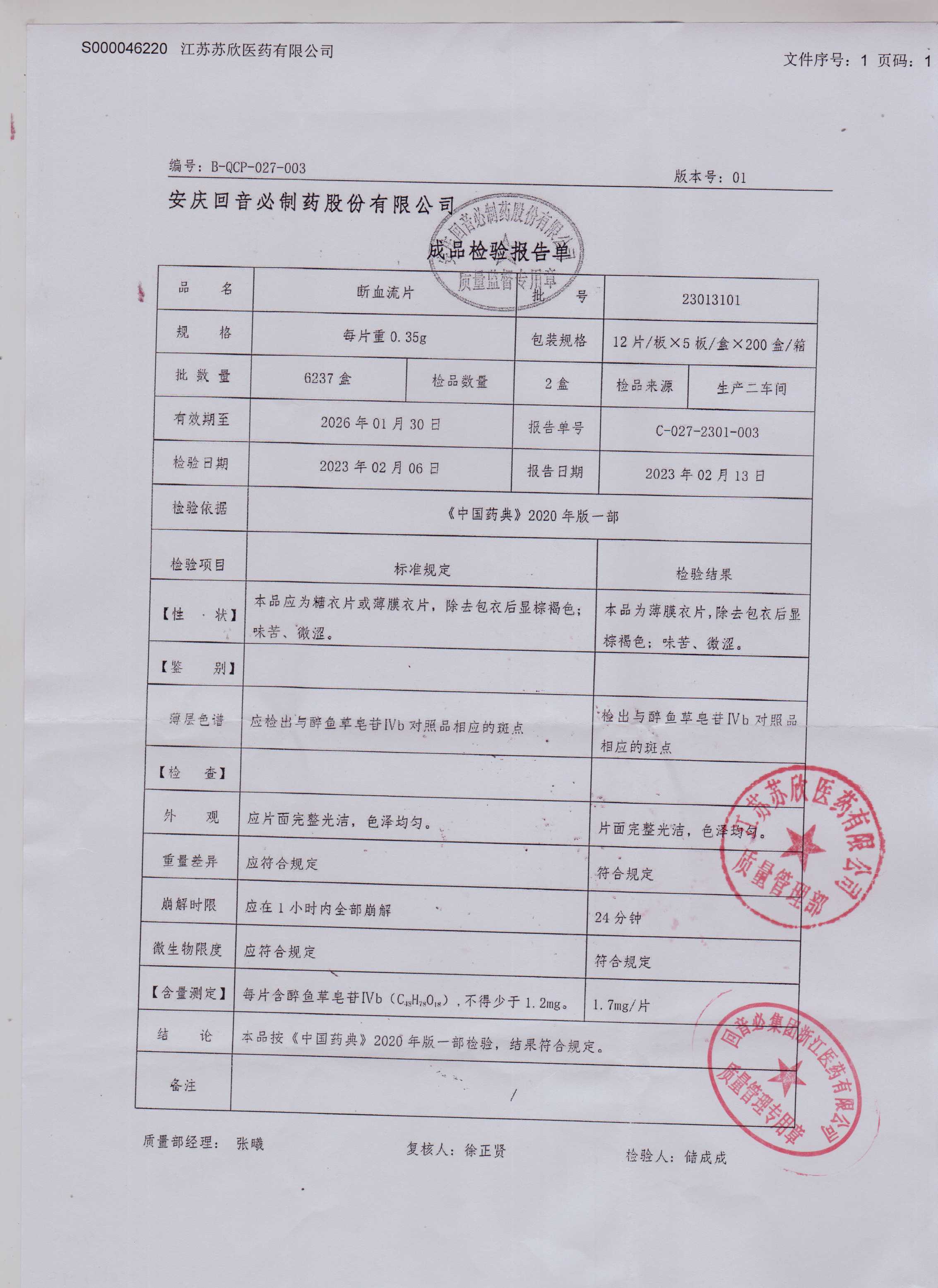 断血流片23013101