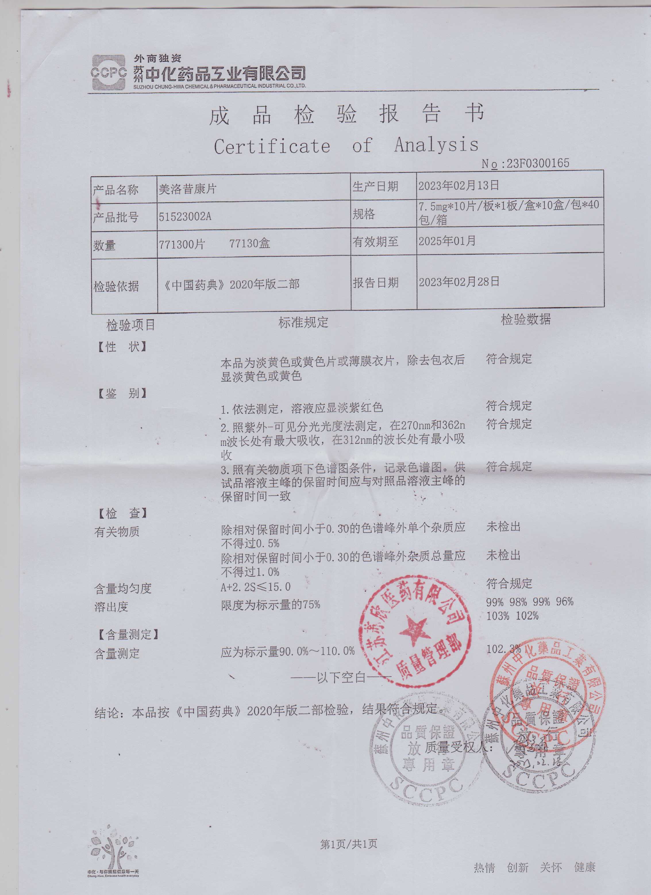 美洛昔康片51523002A