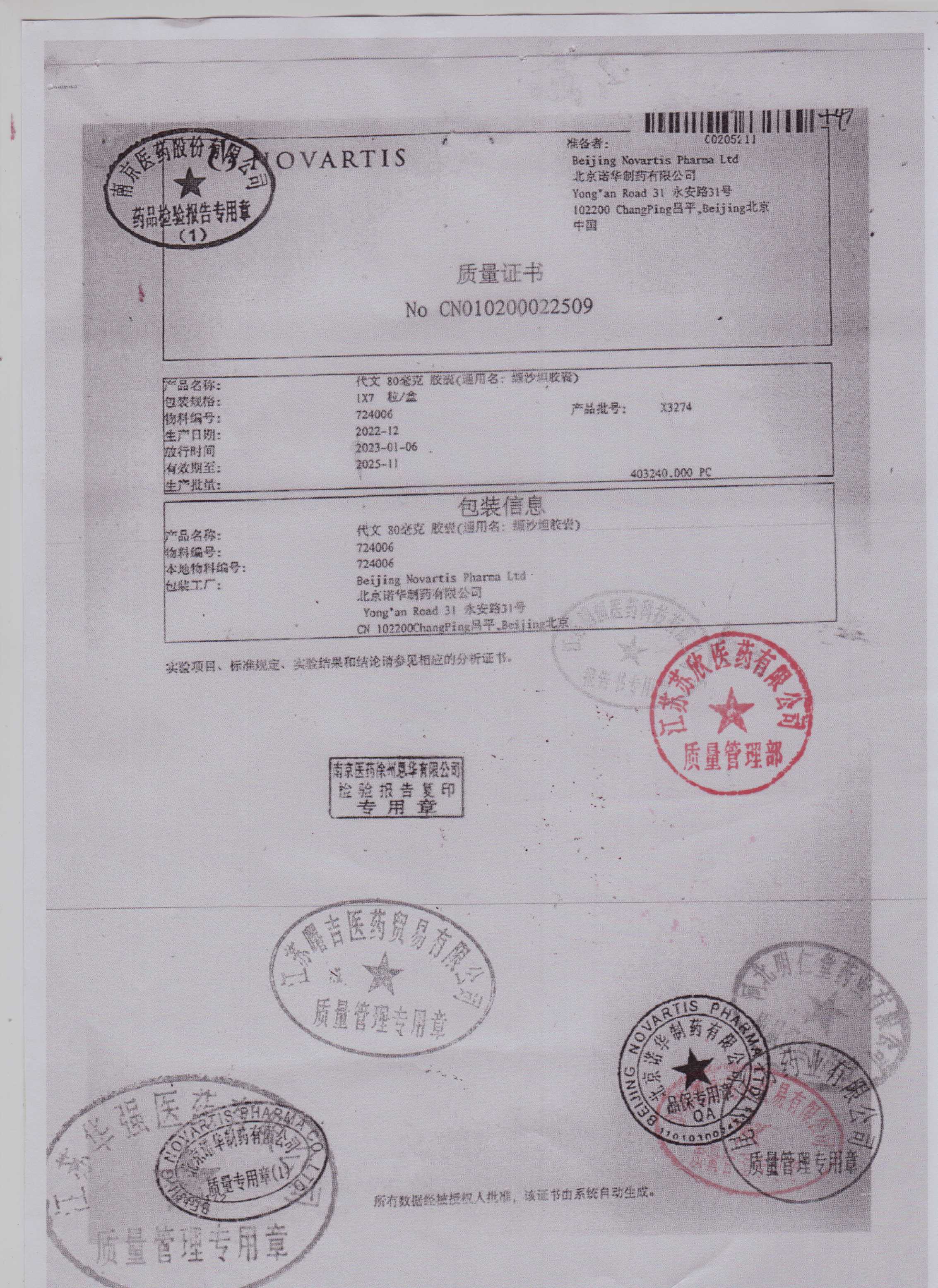 缬沙坦胶囊X3274(4)
