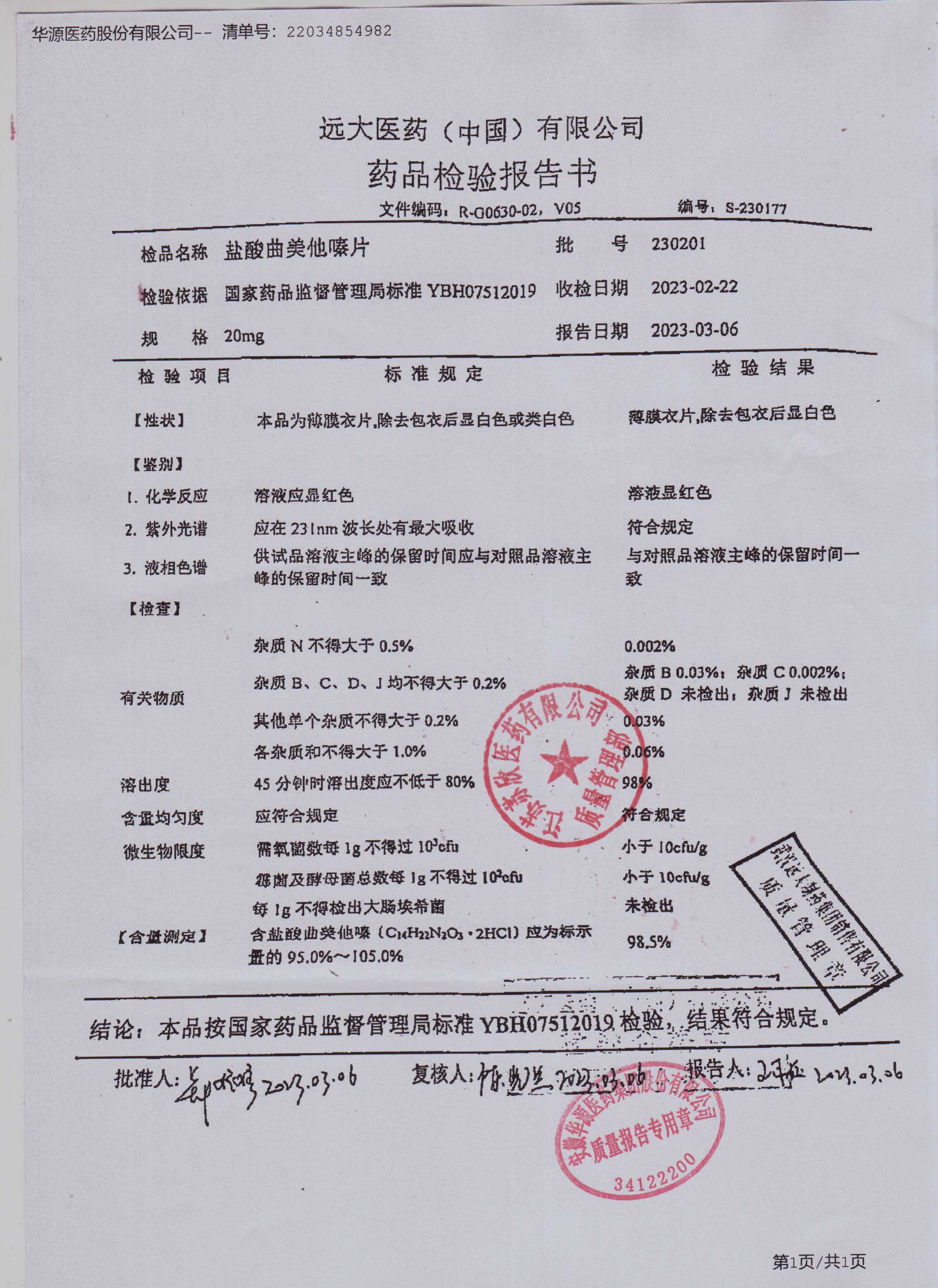 盐酸曲美他嗪片230201