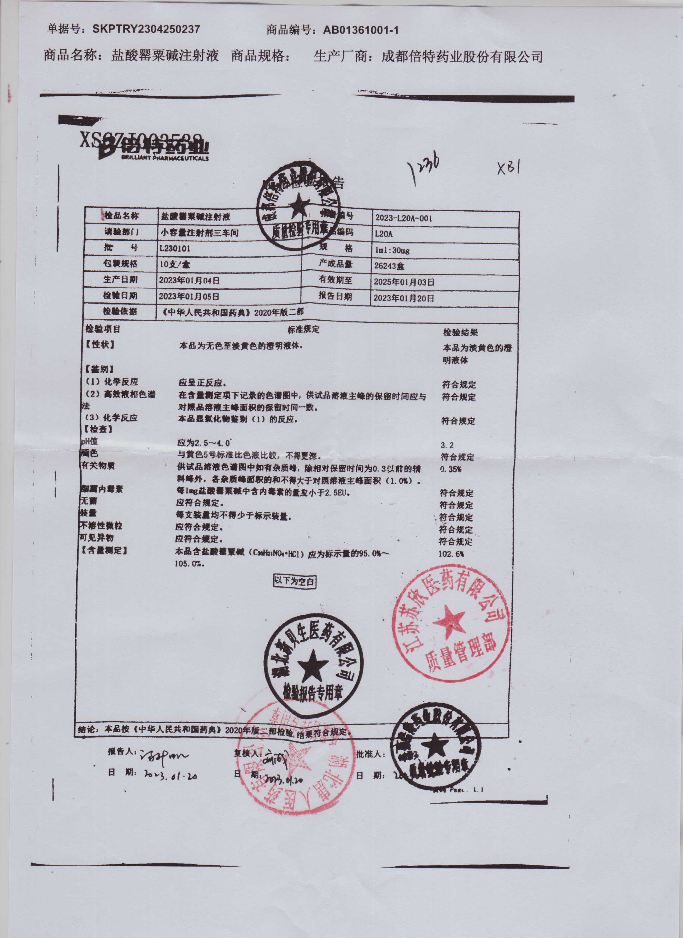 盐酸罂粟碱注射液L230101