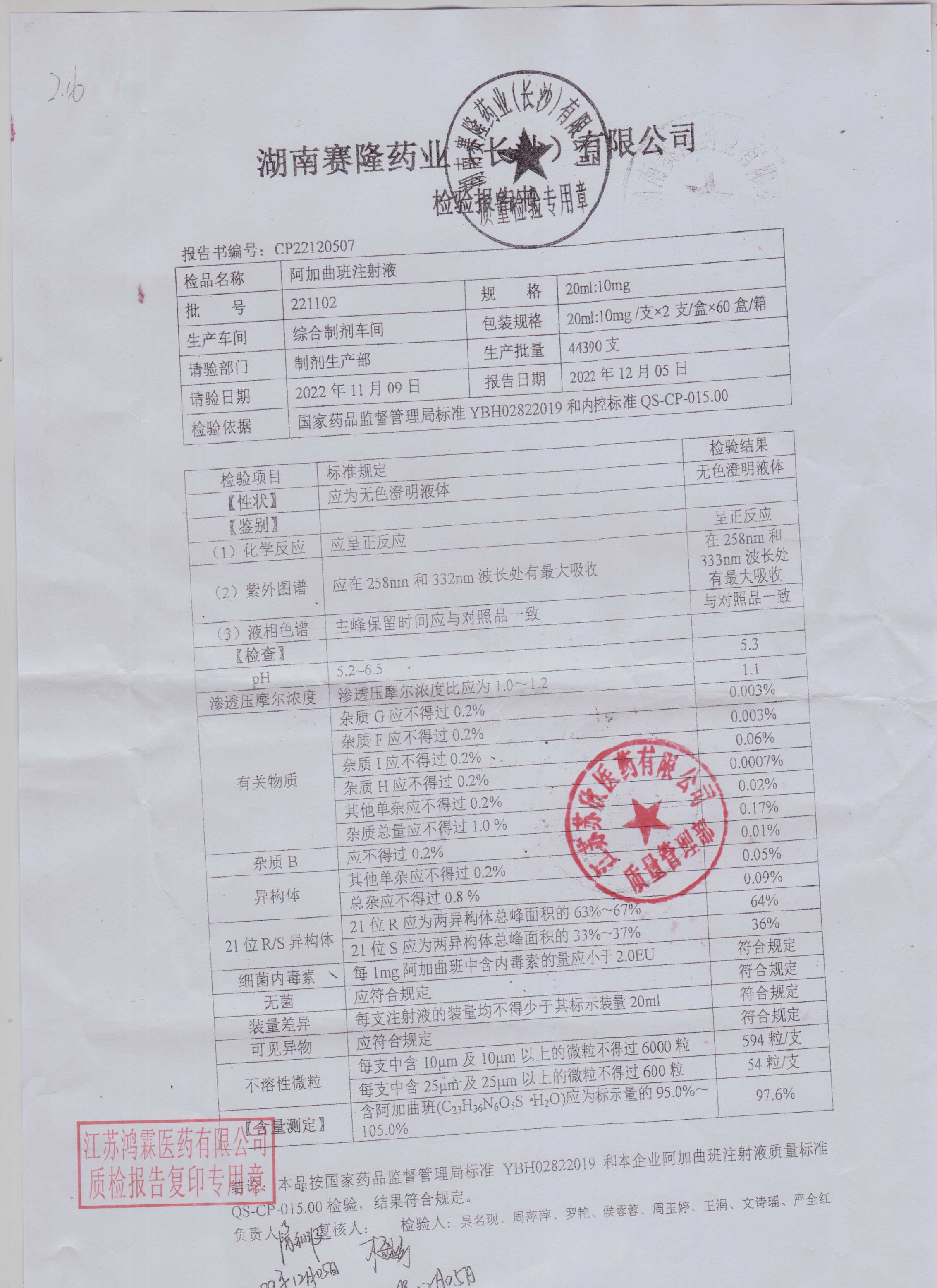 阿加曲班注射液221102