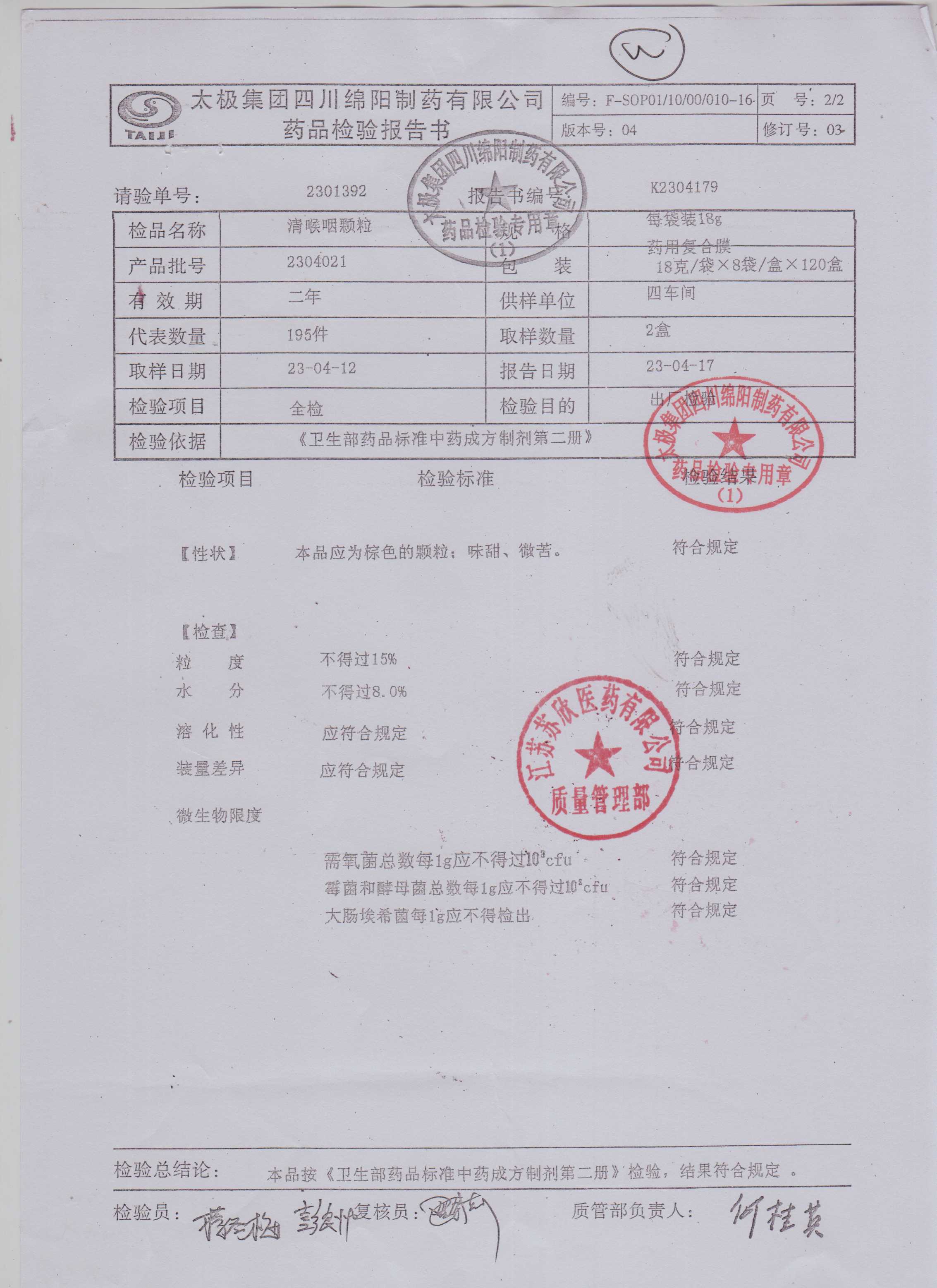 清喉咽颗粒2304021