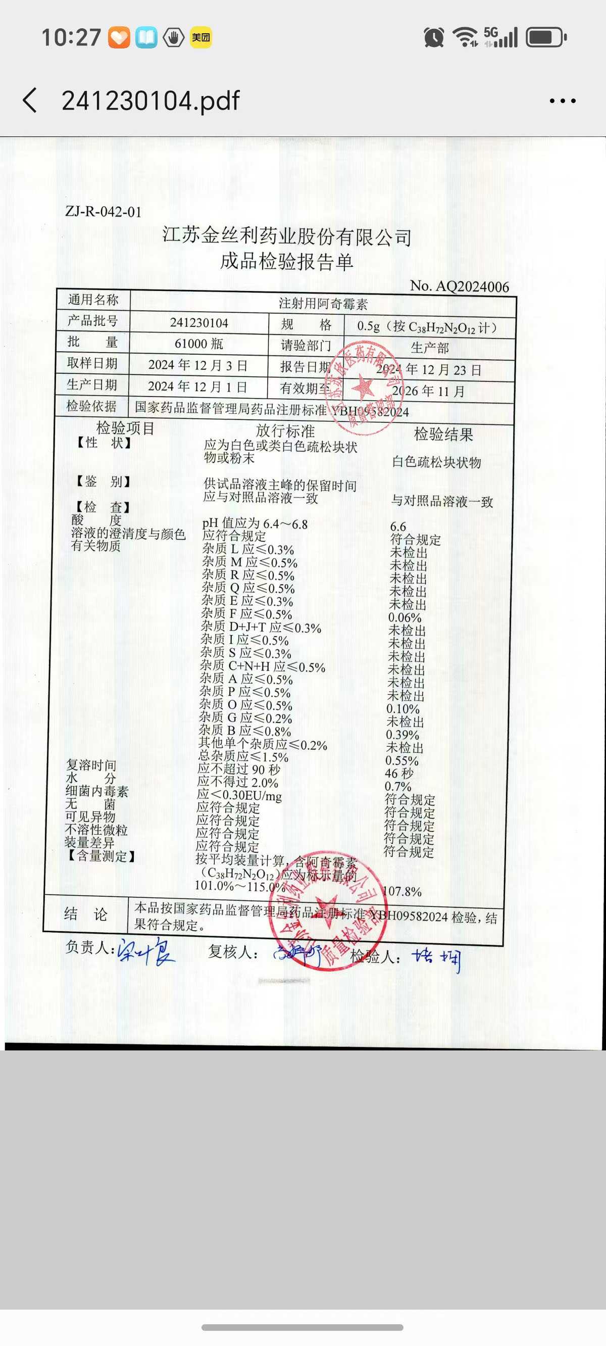 注射用阿奇霉素241230104