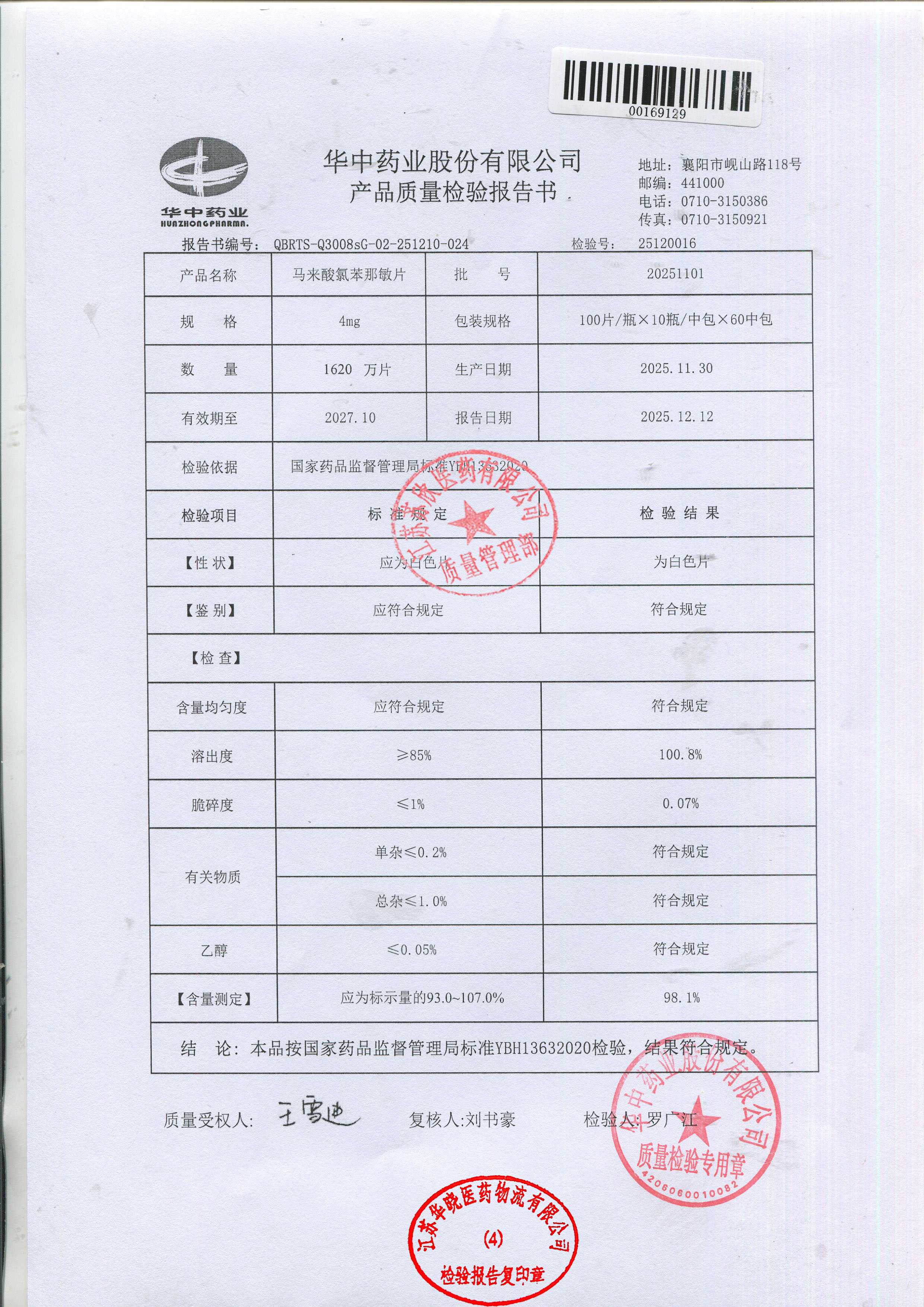 马来酸氯苯那敏片20251101